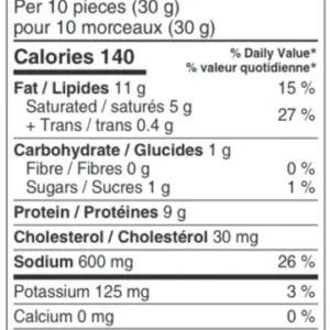 Ingrédients : Bœuf, Sel, Sucres (sucre, dextrose, maltodextrine), Glutamate monosodique, Épices, Protéine de soja hydrolysée, Erythorbate de sodium, Extrait de levure, Nitrite de sodium, Arôme de fumée naturelle.