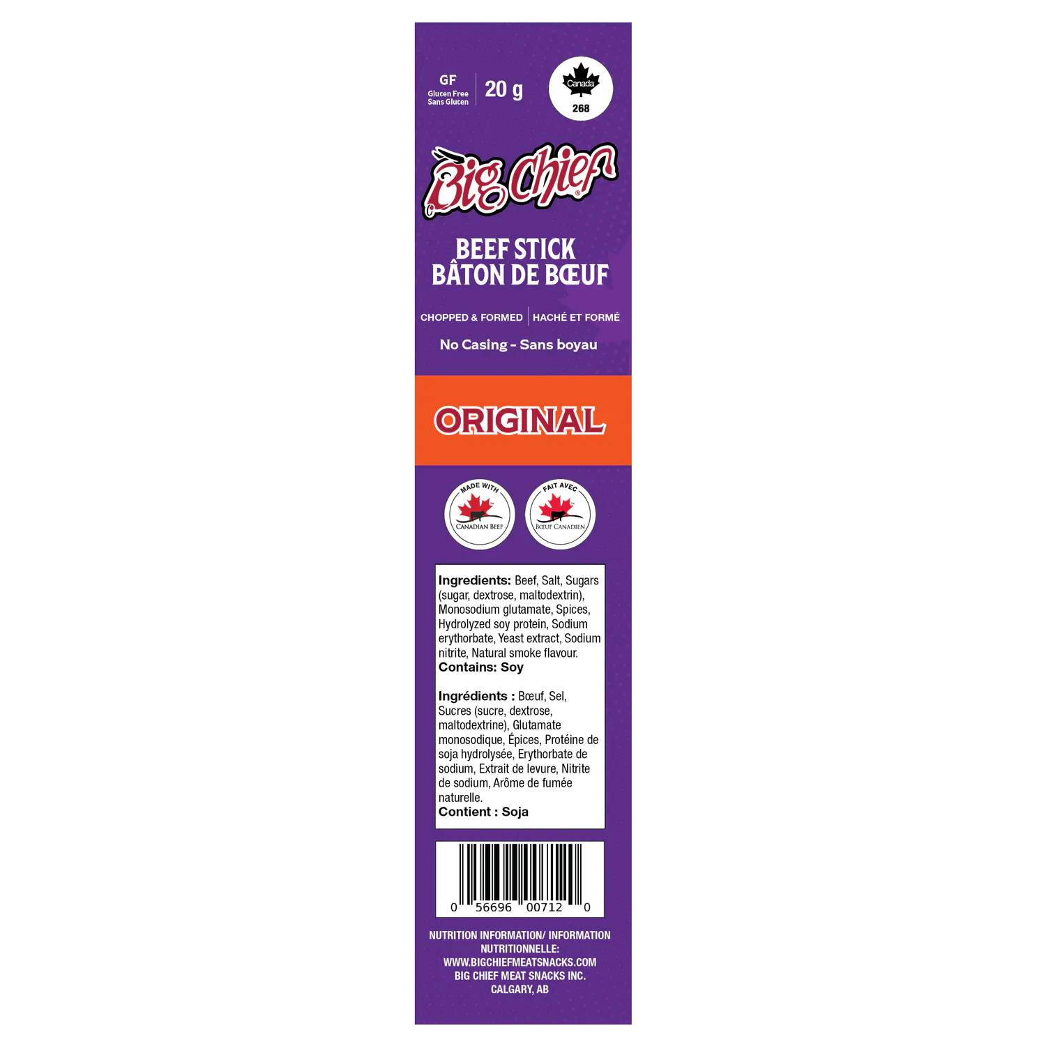Ingredients: Beef, Salt, Sugars (sugar, dextrose, maltodextrin), Monosodium glutamate, Spices, Hydrolyzed soy protein, Sodium erythorbate, Yeast extract, Sodium nitrite, Natural smoke flavour.