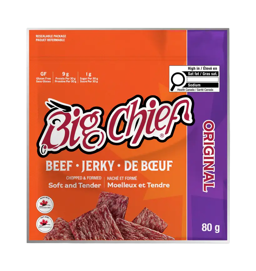 Ingredients: Beef, Salt, Sugars (sugar, dextrose, maltodextrin), Monosodium glutamate, Spices, Hydrolyzed soy protein, Sodium erythorbate, Yeast extract, Sodium nitrite, Natural smoke flavour.